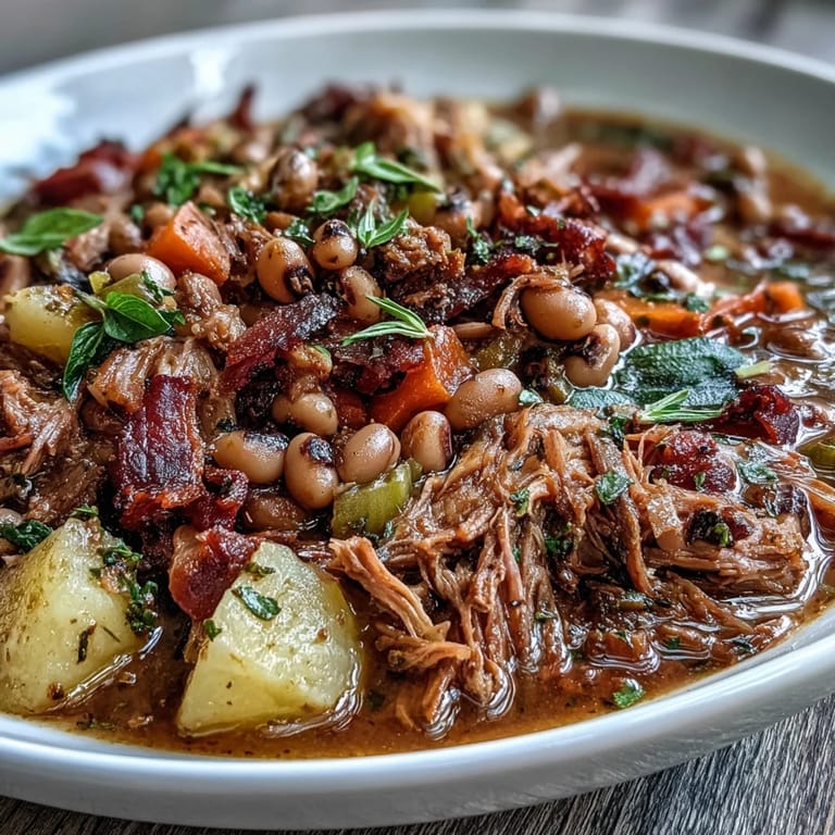 Pin this There's something about the smell of ham hocks simmering with black-eyed peas that instantly transports me to a kitchen filled with warmth and anticipation. My grandmother used to make this stew on New Year's Day, claiming the peas brought luck for the year ahead, though honestly I think the real magic was in how the smoky broth transformed humble ingredients into pure comfort. The first time I attempted it myself, I nearly skipped the overnight soak and lived to regret the rock-hard peas at dinner time. Now whenever I make it, I'm reminded that some shortcuts aren't worth taking, and patience with this dish pays dividends in flavor and texture that no rushing can replicate.