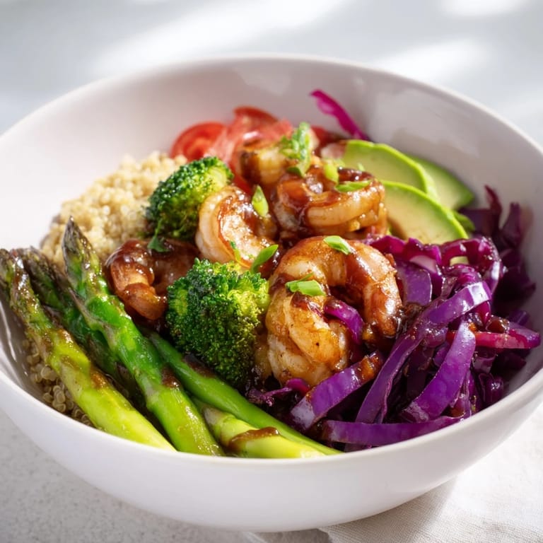 Pin this Last Tuesday I found myself staring at a heap of farmers market vegetables and realized I needed something that felt nourishing but actually tasted exciting. That afternoon I threw together this bowl, something between a salad and a warm grain dish, and the way the balsamic hit the sweet shrimp made me stop mid-bite. My roommate wandered in, asked what smelled so good, and ended up making her own version the next day. Sometimes the best meals happen when you just start assembling what looks beautiful.
