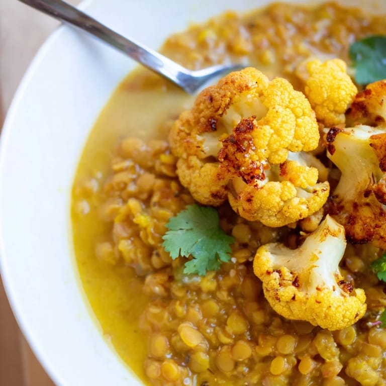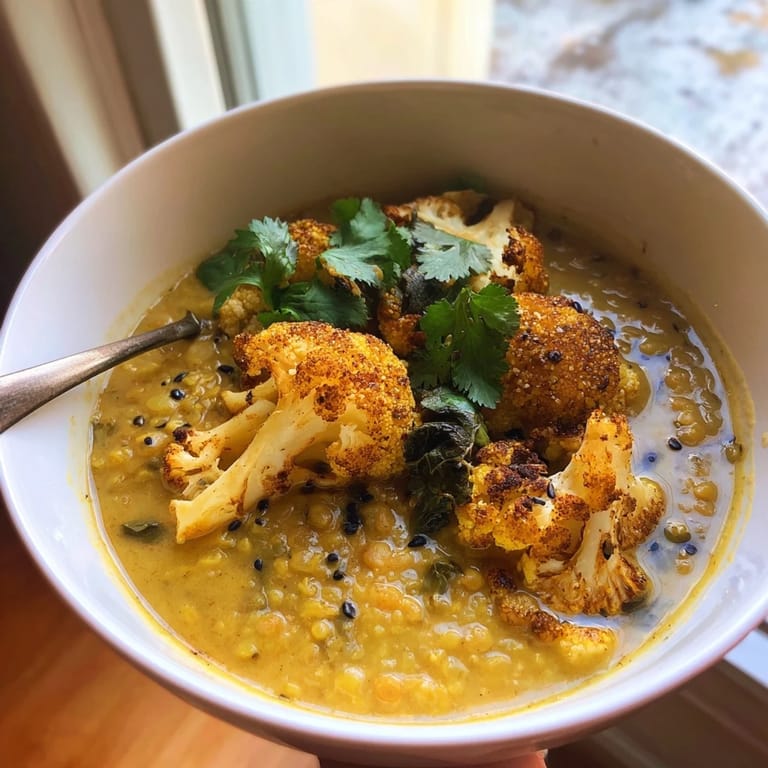 Pin this The first time I made dhal, I stood nervously over the pot, watching mustard seeds pop and dance in hot oil like tiny fireworks. My neighbor Priya had walked me through the process over her fence, laughing as I wrote down her approximate measurements on the back of a grocery receipt. Now this red lentil dhal with roasted cauliflower has become the dish I make when I need something that feels like a hug in bowl form.