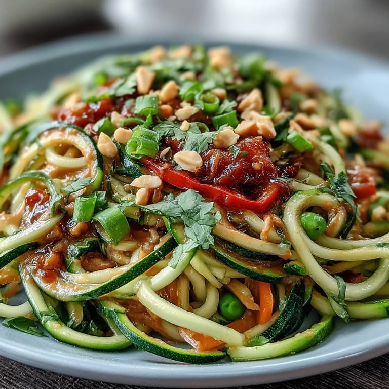 Pin this My spiralizer sat unused in a drawer for months until a friend mentioned she'd been eating zucchini noodles for lunch without feeling guilty about carbs. I laughed it off, but one sweltering afternoon when nothing sounded heavier than a salad, I pulled it out and started twisting zucchini like I was making pasta for the first time. The kitchen smelled nothing like a traditional stir-fry, and that's exactly when I realized how refreshing a warm bowl could feel, especially once I drizzled that creamy peanut sauce over everything. This dish became my answer to wanting something that tastes indulgent but feels light.