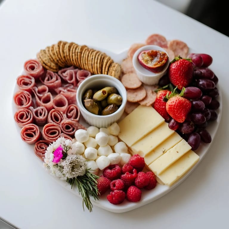 Pin this The Heart-Shaped Charcuterie Board is the perfect centerpiece for any romantic evening or special gathering. Combining an elegant assortment of cured meats, creamy cheeses, fresh fruits, and delightful accompaniments, this appetizer platter is designed to impress both in presentation and flavor. Arranged thoughtfully in a charming heart shape, it invites guests to indulge in a variety of savory and sweet bites without any cooking required.