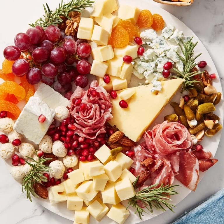 Pin this A festive, visually stunning cheese platter arranged in the shape of a holiday wreath, featuring a variety of cheeses, cured meats, fresh fruits, and herbs perfect for entertaining.