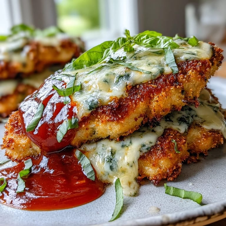 Pin this My neighbor knocked on my door one Tuesday holding a jar of homemade pesto, insisting I try something new with chicken that night. I had planned plain baked breasts, but her enthusiasm was contagious, and I ended up layering that bright green sauce under marinara and cheese. The smell that filled my kitchen was so good my husband came home early asking what special occasion he'd forgotten. It wasn't fancy or complicated, just a happy accident that turned into our most-requested dinner.